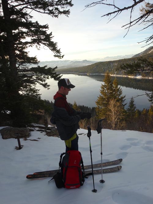 We crossed the creek and did a nice sidestep/ski back to the summer trail switchbacks. Here we put on the skins for a final ascent back to the Phelps Lake overlook. Snow conditions allowed for a fast ski back to the car, which we drove straight to the Local for a burgers and beers.