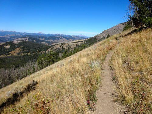 Soon the trail begins to switchback and the views of the Taylor Hilgards to the west will make you smile as they pop out over the distant skyline of the Madison Range. Eventually the trail hits the ridge line offering up views deeper in to Yellowstone National Park.