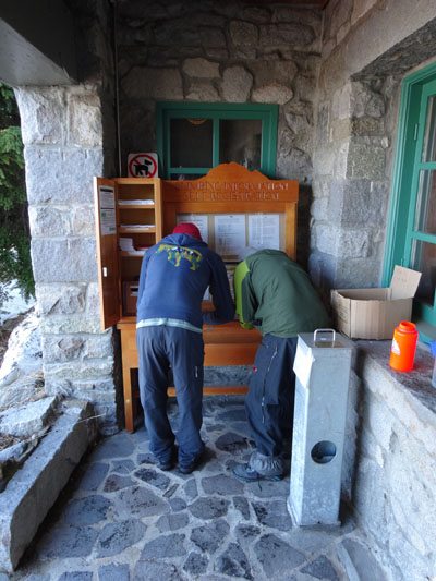 In late April, the permits were obtained via self registration at the Paradise Climbers Information Center. It cost $46 per person for a climbing permit that is good for the year. We then parked the car in the lower parking lot at 5380′ and geared up for an overnight ski mountaineering mission in complex glaciated terrain on Mount Rainier.