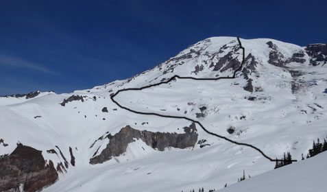 See our route for skiing the Fuhrer Finger On Mount Rainier:
