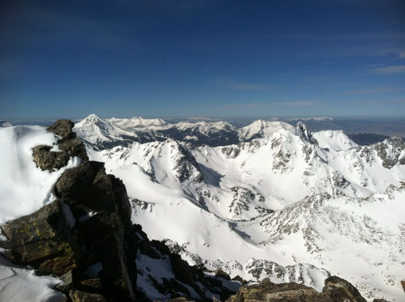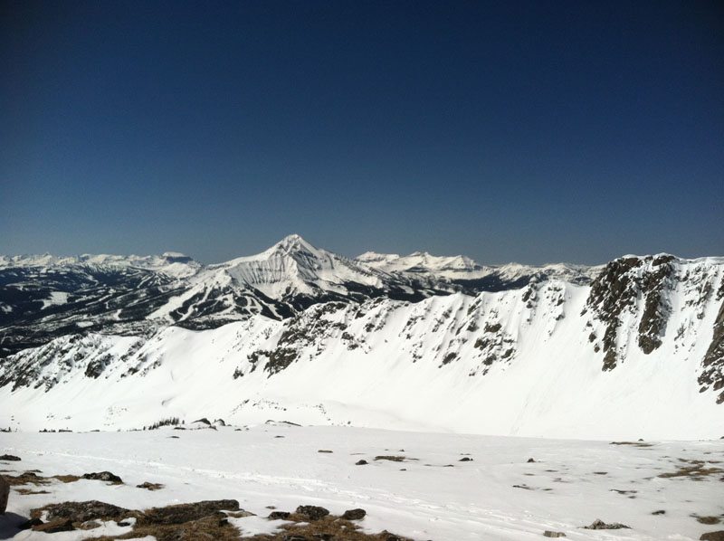 In early May 2012, Micah Swanson and I decided to head into the Spanish Peaks of the Madison Range in the Lee Metcalf Wilderness to ski the highest peak in the range – Gallatin Peak. Gallatin Peak is visible from Bozeman and from Big Sky Resort. It’s tempting SE face is a perfect pitch and holds snow late into the spring skiing season.