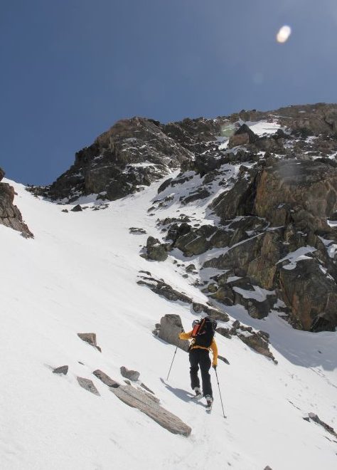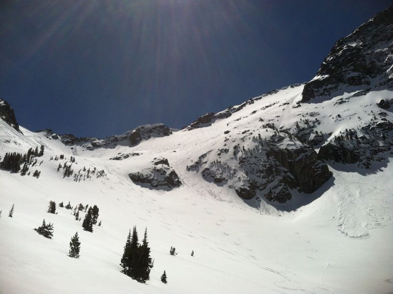 We quickly broke down camp and started the long walk back to Beehive’s busy parking lot. There is a beautiful and safe ramp heading out of Hell Roaring to Bear Basin. The ski into Bear Basin was bushwhacking and we maneuvered all the way to the base of Spanky’s (the ultra classic line near the Beehive Prayer Flags).