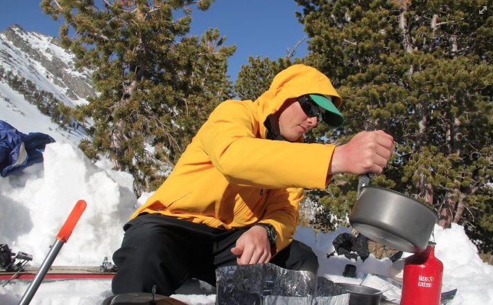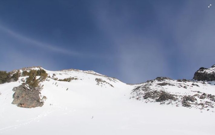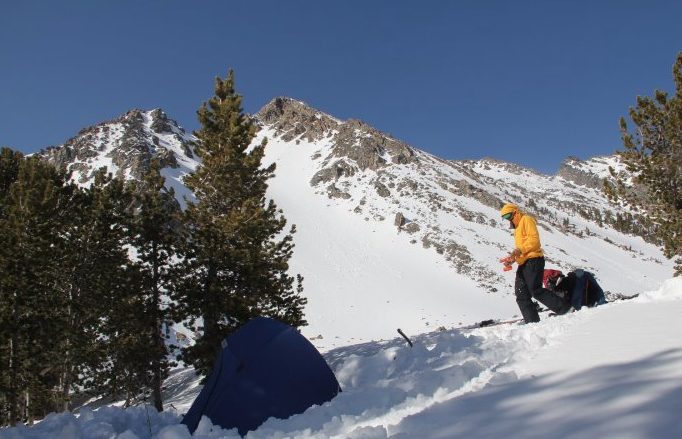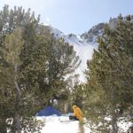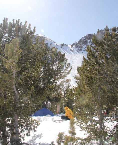 A short skin and quick bootpack on firm snow got us into Hellroaring Basin, where we camped in the trees near the base of the SE face. We pitched the tent and got ready for an early morning.