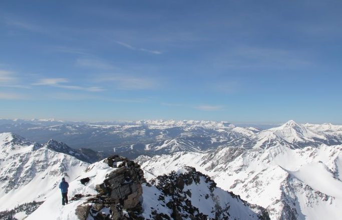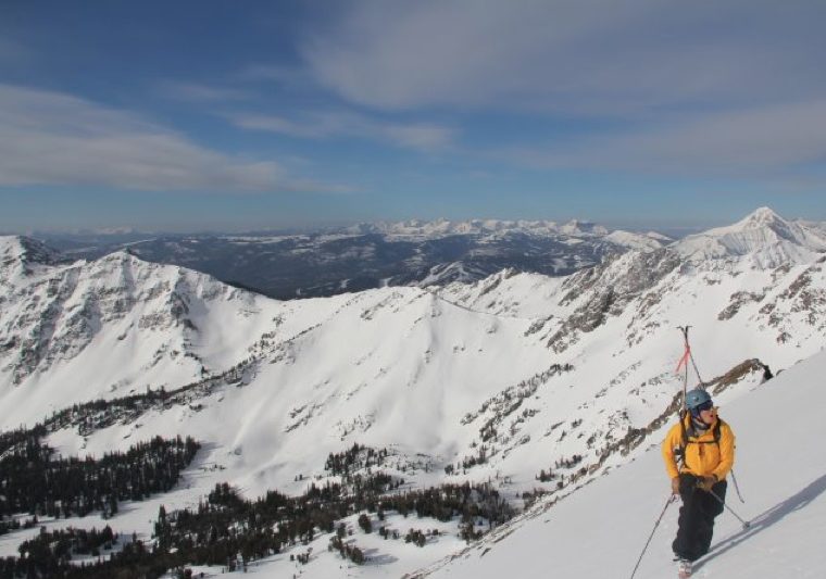 Skiing the South Face of Gallatin Peak in the Spanish Peaks of The Madison Range