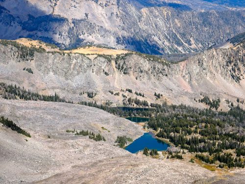 Instead we enjoyed the views – Echo Peak, Dutchman Peak, Sentinel Peak, Peak 10930, Imp, Koch, Hebgen Lake, and so many unnamed peaks spread out in all directions. Numerous colorful lakes spotted the basins far below. It was unreal and I took way too many photos.