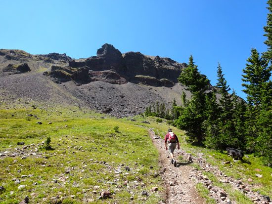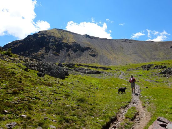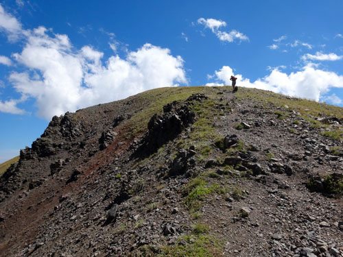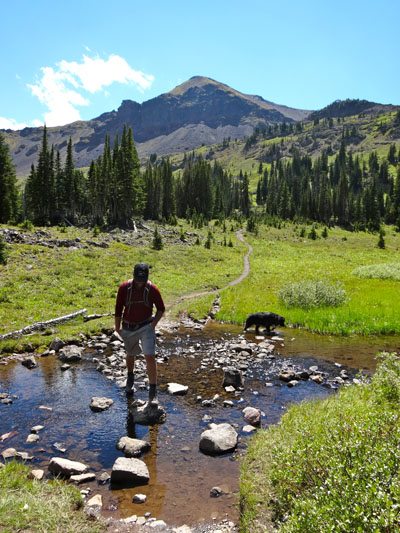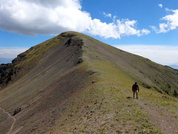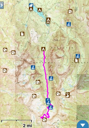 The trail continues to climb steadily toward Hyalite Peak. It follows the path of least resistance crossing a few streams, passing a few unnamed lakes, and slowly climbing to the summit. If you’re running short of water, we saw the last water at about 9,450′ – make sure your dog gets a drink!