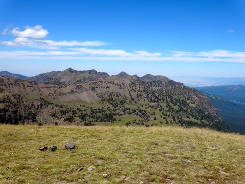 And what an impressive peak it is. The views are outstanding. In the hazy distance you can see the entire span of the Madison Range with mountains like Sphinx, Lone Mountain, and Gallatin Peak standing out against the skyline. The Absarokas and Emigrant Peak tower over the Paradise Valley to the East. To the west is Garnet Mountain and Storm Castle. The Bridger Range can be spotted on the far side of the glimmering town of Bozeman. And there we were smack dab in the middle of the Gallatin Range with Chisholm, Fridley, Bole, Elephant, and other summits almost within reach. Amazing.