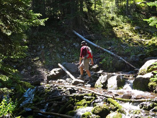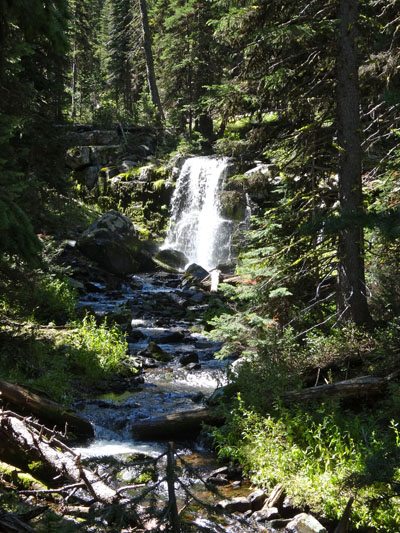 The trail makes for easy walking. According to the sign, it’s 7.5 miles to the summit. For the first few miles to the first waterfall, the trail is even handicap accessible. Eventually the trail turns into a single track as it gradually climbs and follows the creek. It’s an obviously well maintained trail that sees lots of traffic. There are plenty of turn offs where you can splash around in scenic waterfalls or wander down to Hyalite Creek.