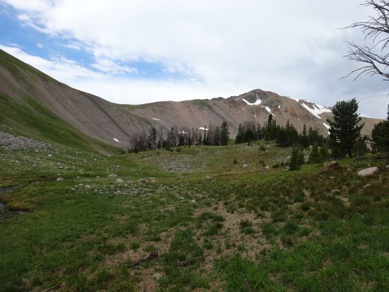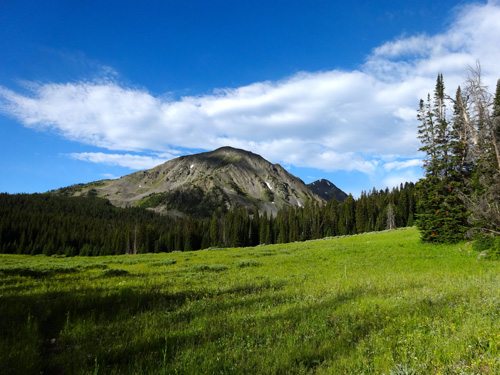 Shortly after the private property ends you’ll hit the Lee Metcalf Wilderness boundary and there is another trail split. Turn right on to the Alp Creek Trail #158 at approximately 7950′. The Alp Creek trail follows a few switchbacks and then mellows again as you approach Sedge Meadows in about 1.5 miles. Once you enter Sedge Meadows the trail crosses the creek and continues onwards toward the saddle between Pyramid Point and Point 9348. This trail is well trodden but is not marked on my maps.