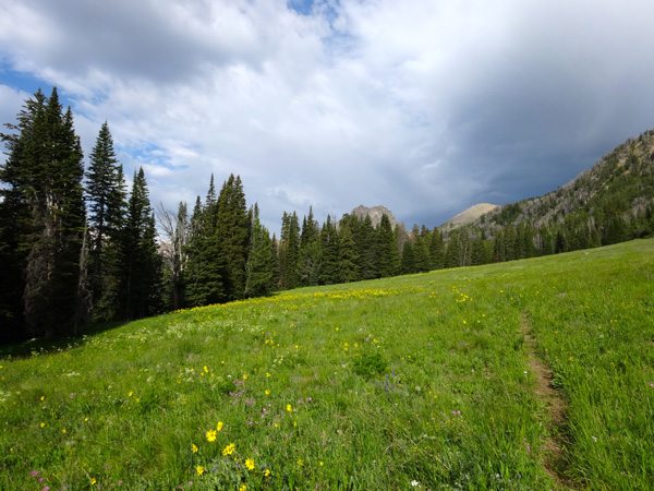 The trail is mellow through open meadows for about half a mile to where the Taylor Falls Trail #17 splits with the Lightning Creek Trail #7. We turned left and continued on the Lightning Creek Trail, which we stayed on for about 2.4 miles. Soon the trail hits private property. Please stay on the trail as there is a well marked easement through this area.