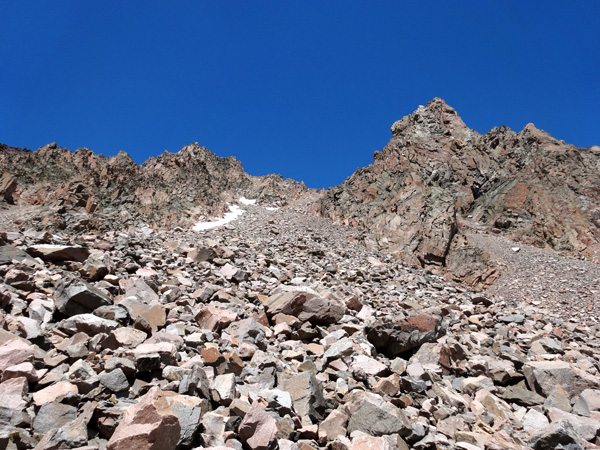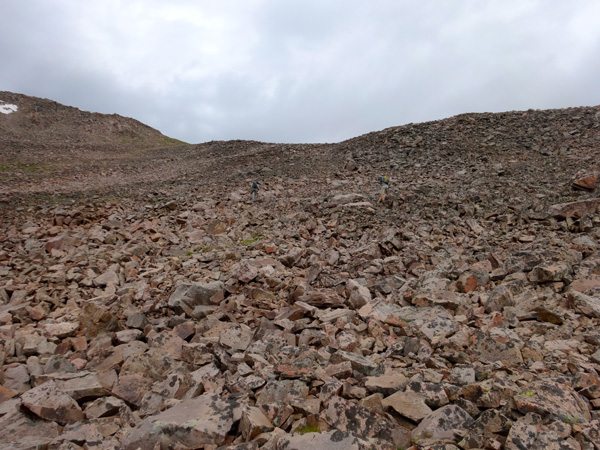 To get back to the car we decided to continue down the more direct South Couloir instead of returning via our ascent route. The South Couloir is a mix of loose scree, softball size ankle busters, massive boulders, and silver surfers. We took our time and soon made it back to flatter ground. We then used GAIA GPS to guide us back to the trail.