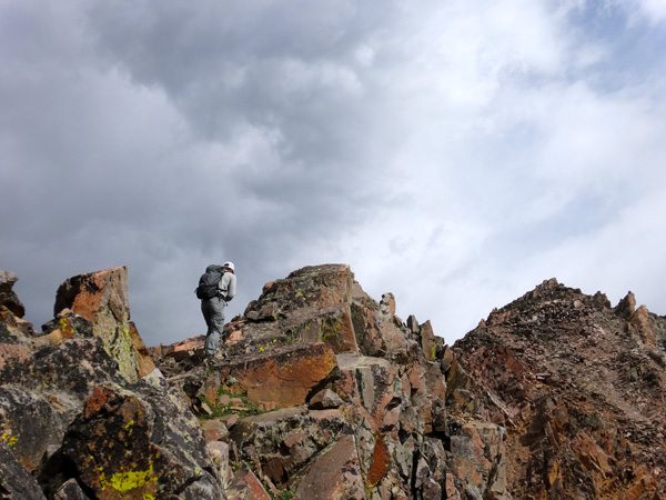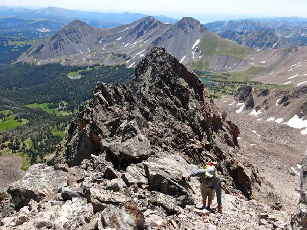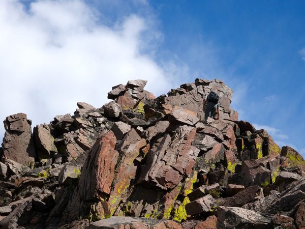 Following the ridge was a fantastic adventure. It was simple ridge walk/scramble/climb. Discussion amongst our crew determined that the south Ridge would be a class 3 to 4 climb. There may be one or two fourth class moves near the top, but no ropes are required, just sure-footing above a bit of exposure.