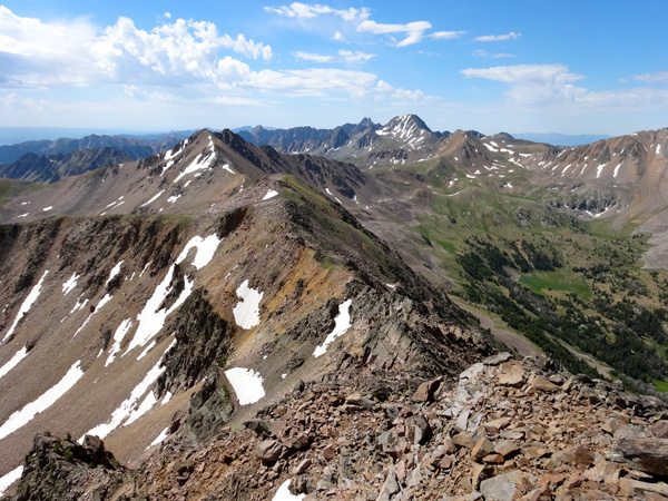 Both summits offer mind blowing views. It’s unreal out here. The entire range spreads out in all direction – Echo, Koch, Hilgard, Woodward, Sentinel, Pyramid, Peak 10930, and the Monuments and Spanish Peaks in the distance. It’s endless.