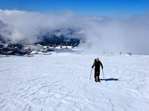 From here it was an easy ski back to Timberline Lodge. We made a point to traverse across the Zig Zag Glacier so we didn’t get sucked down to the southwest into the Mount Hood Triangle – even though it looked very inviting. It would be nice to have GAIA app with some preset waypoints if it was a whiteout.