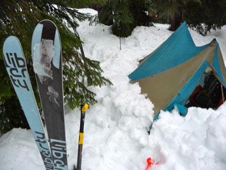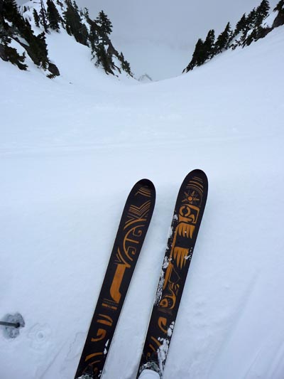 The bamboo core makes for a lighter weight ski that only weighs 4.85 lbs per ski. I added the Dynafit Radical bindings to mine for a total weight of 5 lbs, 11 ozs per ski. It’s not the lightest backcountry setup available, but the ski performance makes up for the added weight. The ability to handle all conditions, the 97mm under foot, and the self-minding skin notch make it an ideal ski for all sorts of adventures.