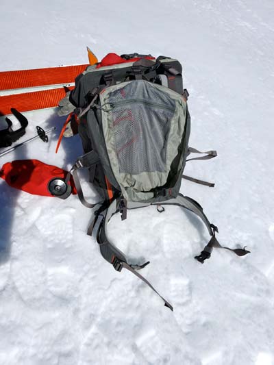 Avalanche Tools Pocket – There are not too many packs that feature a large avalanche tools pocket. The pocket is large enough to slip a 320cm probe, my BCA Dozer Shovel, and my G3 Bonesaw inside. If I need an ice axe, I can also slip my BD Raven inside the pocket, although there are exterior ice axe attachments that I sometimes use. The pocket is loose enough that when the pack is stuffed full, the avalanche tools are still easily accessible – an issue I’ve dealt with on other ski packs. The only very minor downfall is that there are no sleeves for the tools so things can get jostled around.