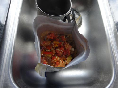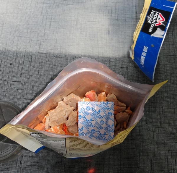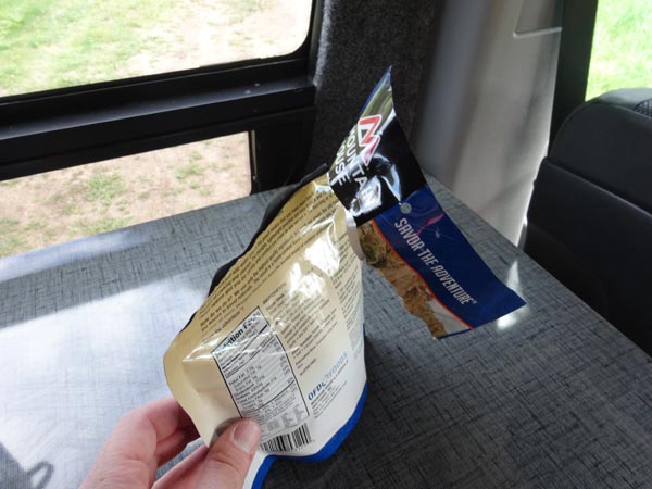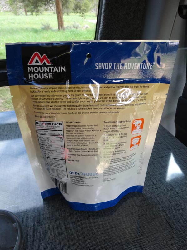 One of the great things about Mountain House Freeze Dried Food is that it is self contained. Just open the pouch, remove the “Do Not Eat” packet, and add water. The amount of water will vary for every recipe. Just read the directions.