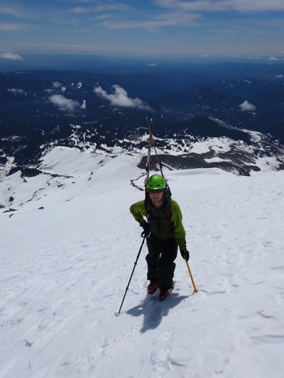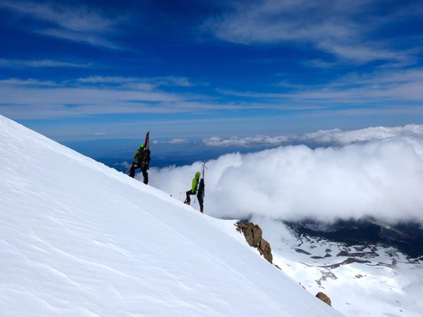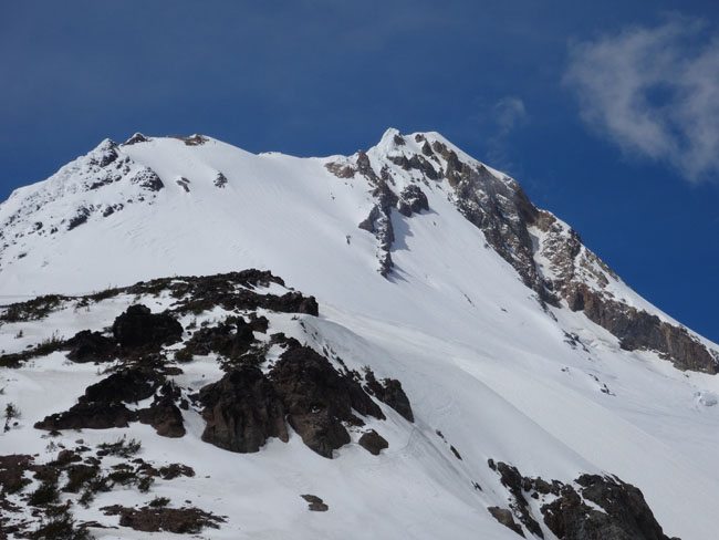 After skiing the Worm Flows on Mount Saint Helens, our plan was to ski the Southwest Chutes on Mount Adams. Unfortunately, things don’t always go as planned. The FS roads to Mount Adams were still covered in snow, so we decided to head south and tick off the Newton Clark Headwall on Mount Hood in Oregon.