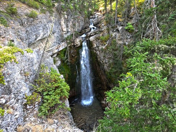 There were a surprising number of elaborate bridges along the trail – not something one usually expects in a wilderness area. But it kept our socks dry so it made us happy. After 4.5 miles and 925′ of gain we reached an overlook that dropped steeply down to a beautiful waterfall that plummeted out of No Man Creek. It must have been 100′ tall.