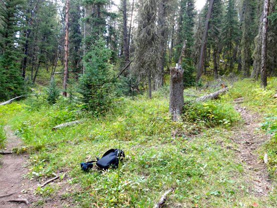 After this bridge, the mellow trail continues to follow the creek and roll along the terrain through open forests and scenic meadows. Large peaks tower overhead to the north. It’s stunning terrain. Walking east into the rising sun gave the forests a surreal feel as we cruised along the trail.