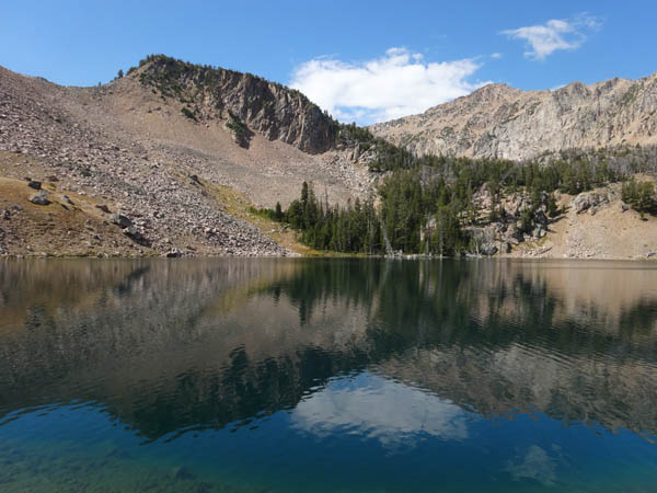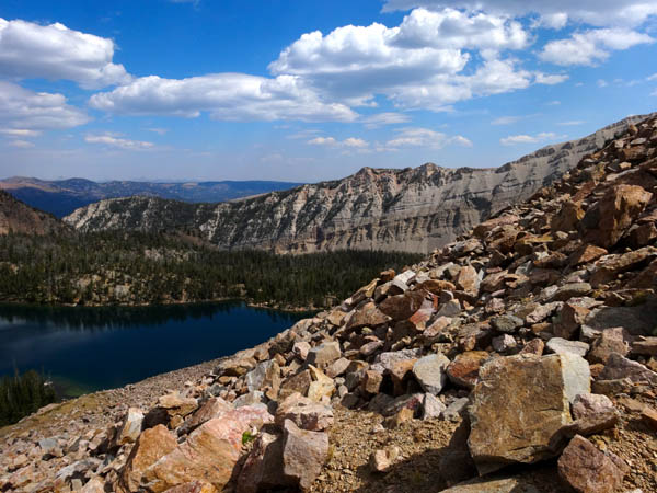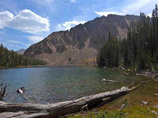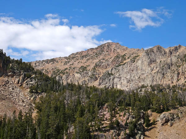 Now, our goal wasn’t really just hiking to No Man Lake. Our goal was to climb No Man Peak. We carefully rock hopped around the southern side of the lake and worked our way up toward the peak. At about 10,000′ we stopped for water and decided that today wasn’t the day to summit the peak for a variety of reasons. Instead we skirted around the northern end of No Man Lake, crossed the rock dam, and made our way back to Trail #329.