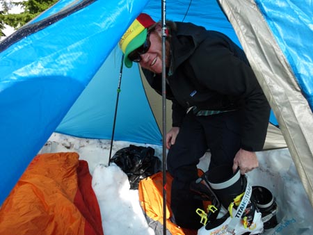 One thing that takes a bit of getting used to with the Scarpa Maestrale is the boot tongue. It’s a unique design called Alpine Axial Tongue Closure. The asymmetric tongue swings open on hinges so it is open nearly to the toes. A thick liner keeps the snow out, but the real beauty is that it makes it a breeze to get your foot into the boot even in sub-zero temps.