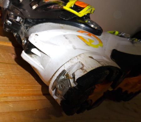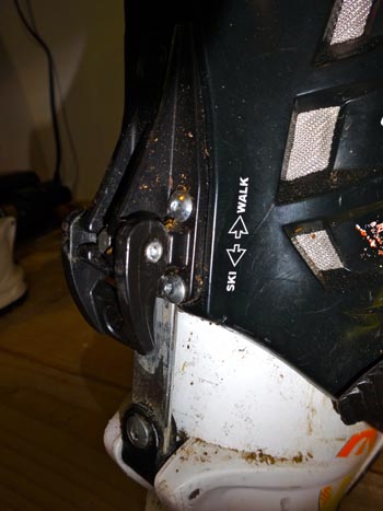 UPDATE: 03/03/15 – Since I wrote this original review, I have run into one more additional issue that should be addressed. The upper hinge on the boot has cracked twice. I’ve noticed it at in opportune times – while in Switzerland and while in GTNP. The boot still holds together, but this causes unnecessary stress on the other parts of the boot. I attribute the failure of this grey hinge piece to normal wear and tear. There is good news though. The boot can still be skied for a short period. Any decent outdoor shop can fix this riveted piece for about $5. They usually carry the piece because this failure is seen regularly.