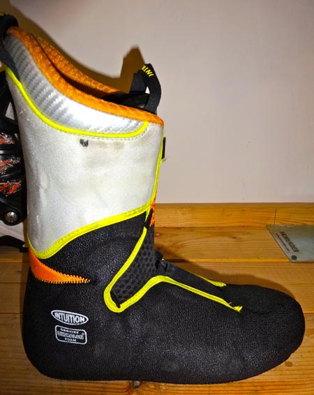 One other sweet feature of the Maestrale RS and other Scarpa boots is the addition of an Intution Liner. The Maestrale RS features the Intuition Pro Flex RS boot. It features two pull loops for easy entry and a tongue in the front. Intuitions have a reputation as being warmer, more comfortable, and better performing than other stock liners. I have found this to be true.