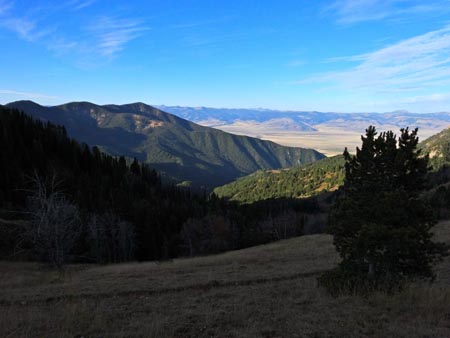 The terrain eventually opens up. The trail splits one more time as you exit the drainage. Head south for the last mile. The final push crosses rolling meadows with outstanding views of the Madison valley. Finally, it drops you back into the Bear Creek Trailhead and parking lot.