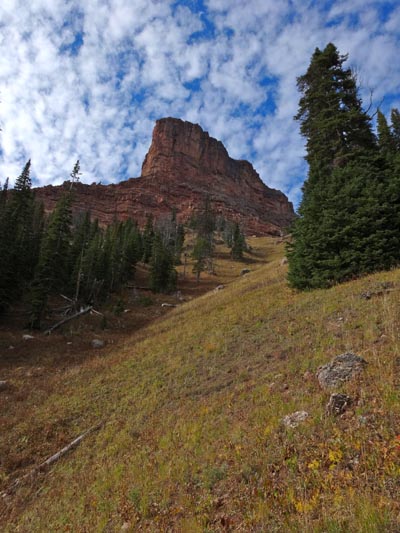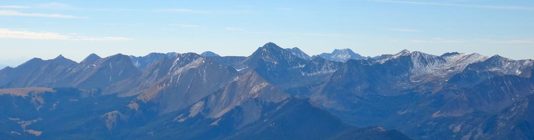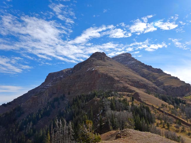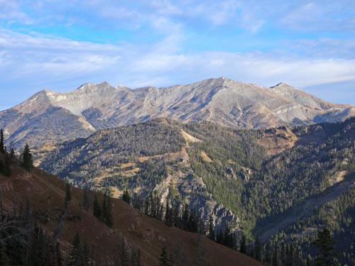 On a lucky Thursday in October, Justin Howells and I decided to climb Sphinx Mountain. Our plan for the day consisted of heading up Trail Fork to the Helmet Pass, summiting the Sphinx via the western gully, and returning to the Bear Creek Trailhead by traveling around Black Mountain (9653′) through the Bear Creek Wildlife Management Area via the Middle Fork of Bear Creek. We figured the day would consist of approximately 13.5 miles and 4600′ vertical.