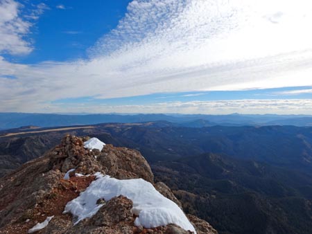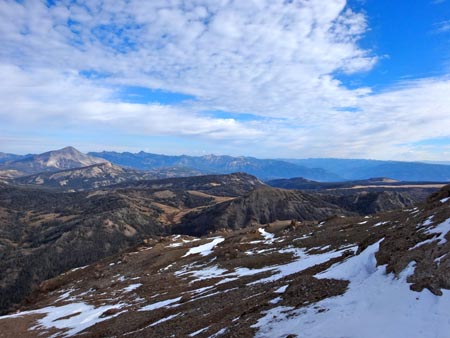 As you can imagine the views were outstanding. The entire Madison Range stood out. Cedar Mountain, Lone Mountain, Big Sky, and the Spanish Peaks dominated the northern skyline. The Gallatin Range and distance peaks of the Absorakas and Beartooths were easily visible to the east. The remote Taylor Hilgard Range stood out to the south. A hazy outline of the Tetons was visible in the far distance. The Madison River and Valley meandered far below. The view alone was worth it. The PeakFinder app helped us determine the names of distinct peaks.