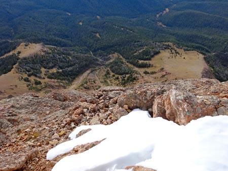 The trail switchbacks down toward the Middle Fork of Bear Creek. The early season ice on the north face of Sphinx Mountain is inspiring and the rock of the Helmet is beckoning, but we were heading back to the trailhead.