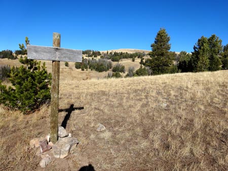 The trail works its way up and down over the rolling, grassy crest of the Gallatin Range. Eventually a small stick propped up by a few rocks signals that you are at the top of The Sentinel at 9945′. The Sentinel is the highest point on the USGS Sentinel quad topo map. From the south, it is easily approached by the wide, grassy ridge, but to the west, north, and east, it drops off steeply.