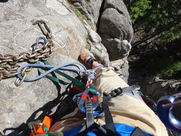 Suspension System: The frameless design features a foam pad, shoulder straps, hip belt, sternum strap, load lifters, which provides the ability to adjust and balance the pack for comfort. My Trail Company suggests the pack will carry 40 lbs, but we found it maxed out at 30-35 pounds – plenty for a lightweight trip. I could tell a big difference between a pack loaded with gear for a hike vs a fully loaded glacier travel kit. Also I had to pack the bag carefully to ensure that any heavy metal (crampons/shovel blades/cams) didn’t poke me.