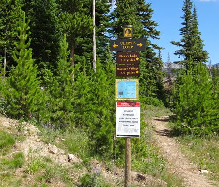 To access the Ulery Lake’s Trail, head up Lone Mountain Trail toward Big Sky Resort. Continue past the Mountain Village entrance and follow the signs to the Moonlight Lodge (formerly Moonlight Basin). Parking is free at the Moonlight Lodge during the summer.