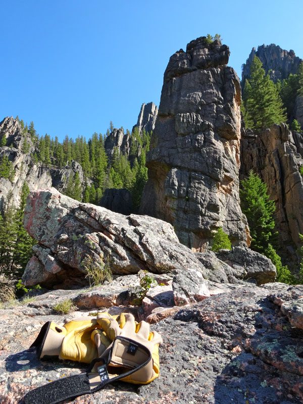 The Waltz is a 5.8 multi-pitch trad climb located on the east side of the Gallatin Canyon gneiss formations. After a quick (20-30 minutes) stroll down the Gallatin River Trail, we turned uphill by the Climber’s trail sign on the rock. According to Gaia GPS, the simple hike totaled about 1 mile and 250 vertical feet and dropped us right at the base of the The Waltz.