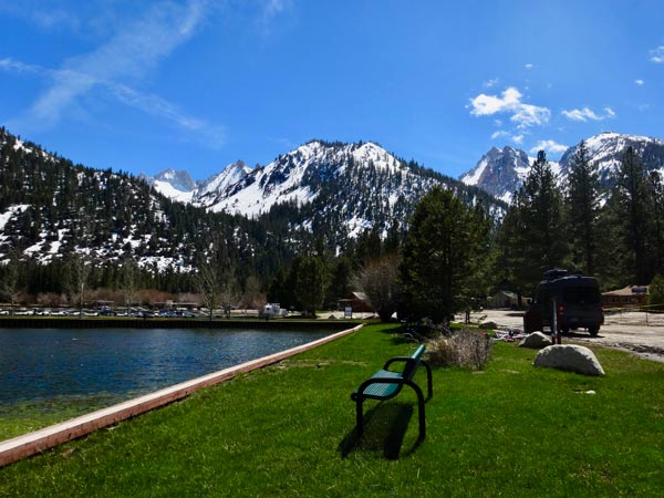 The ascent toward Matterhorn Peak starts at Annett’s Mono Village (7100′). It’s smart to check in so that you know where to park. Annett’s is an RVers paradise and the route to the trail up Horse Creek into the Hoover Wilderness winds through the RV campground before crossing Robinson Creek and hitting the summer trail.