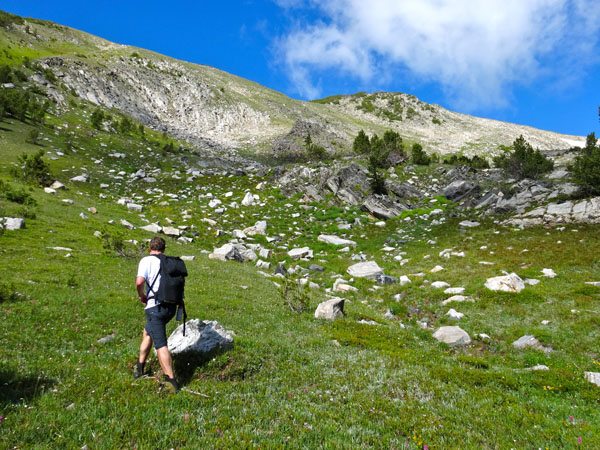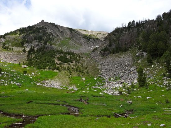 At about 8400 hundred feet we chose to leave the trail and ascend through some stunning alpine meadows littered with wildflowers. This added a few hundred feet and maybe a mile to our route, but the scenery was well worth the extra effort. This is also an easy way to link up with Trail 81 and head to Table Mountain, Deer Lake, or Hell Roaring Lake. It’s easier to go all the way to Dudley Lake before veering off trail.