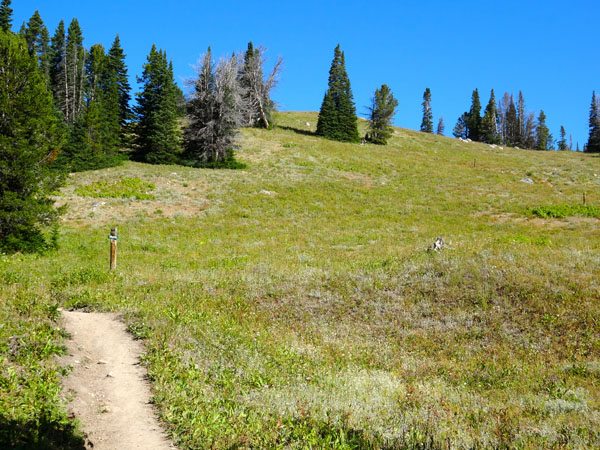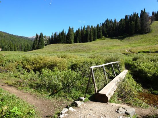 Almost immediately you’ll cross a log bridge over Beehive Creek. The trail meanders through meadows filled with a bonanza of wildflowers (especially in June/July) and groves of fir and spruce trees. If you’re lucky you might see a moose near the creek. Stay on the trail through this section as it’s technically a Forest Service easement through private land. (If you’re interested in real estate in the Beehive area contact Mia Lennon).