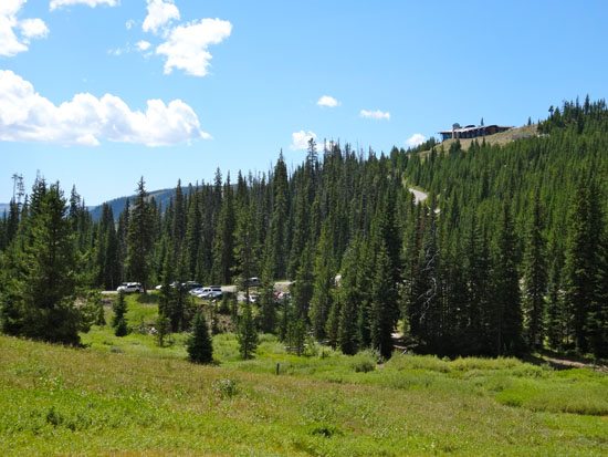 Beehive Basin Road continues uphill and soon becomes a one lane road. Drive slowly through here as the corners are sharp and blind. As the road passes a house that looks like a spaceship, it drops steeply downhill. FYI – the uphill driver has the right away. At the bottom of this steep section is the always busy Upper Beehive Basin Trailhead and Parking Area at 7,900′.