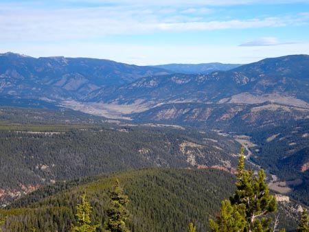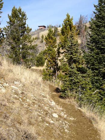 The hike to Cinnamon Mountain starts at the Cinnamon Creek Trailhead. The turnoff is located 10.7 miles south of the main Big Sky turnoff on highway 191. It is on the west side of the road about 100 meters past the Cinnamon Lodge. The turnoff follows a nice dirt road for approximately 0.5 miles. After passing the historic Cinnamon Ranger Station, the trail dead ends at the Cinnamon Creek Trailhead at approximately 6,600 feet.