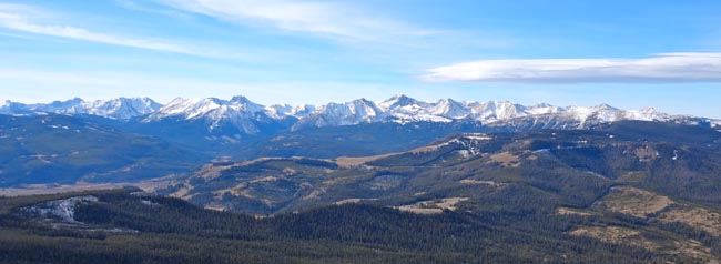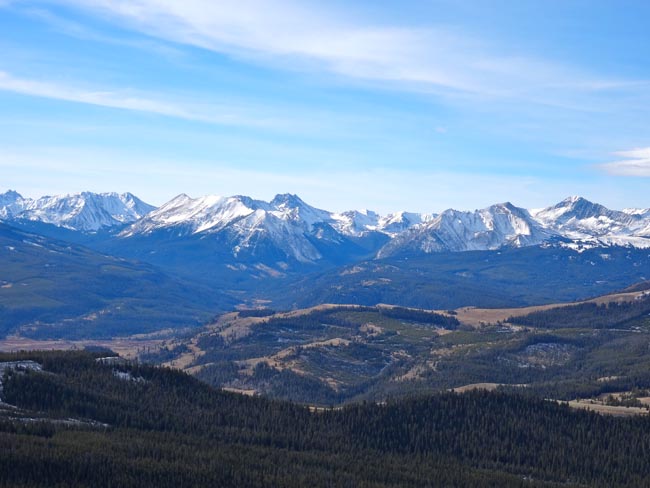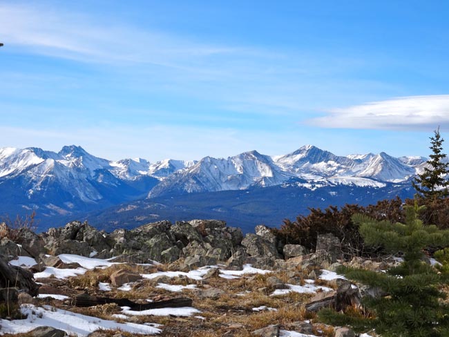 The Cinnamon Lookout Trail continues uphill through the woods, but quickly opens up into wide open meadows – a definite wildflower haven in the springtime. As you switchback through the open meadows, you will begin to get glimpses of distant peaks like Sphinx Mountain and the Taylor Hilgards. The views only improve as the hike continues.