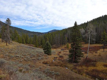 The Cinnamon Buck Trail meanders through aspen groves, pine forests, and open meadows as it follows Cinnamon Creek. The well graded trail climbs steadily, but it isn’t a calf burner like some other trails in the area, like Storm Castle Peak.