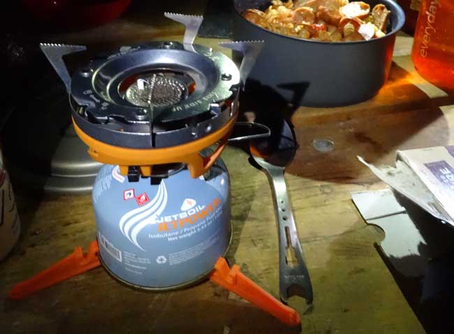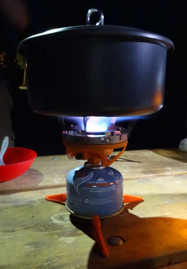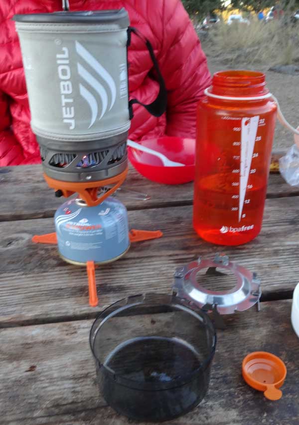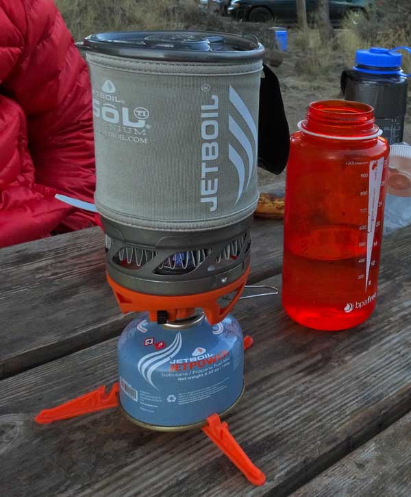 The JetBoil Sol TI is fast, ultralight, idiot proof, and efficient. It works well in the mountains, at moderates altitude, and at campgrounds. The JetBoil’s patented FluxRing sounds like something from a science fiction movie, but it works. And it works well.