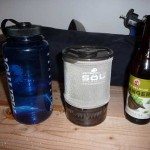One thing that stumped me the first few times I used the JetBoil is how to effectively package the JetBoil and parts for transport. In case you forget, there is a tiny diagram on the side of the JetBoil. Here’s how I pack mine – measuring cup on bottom of titanium cup, tripod fuel stabilizer upside down at bottom of cup, burner/igniter upside down on top of stabilizer, 100 g fuel canister, pot support top upside down, and finally the lid. When packed correctly the lid seals nicely and the stove transport without a problem. When done incorrectly, the lid pops off and the contents can fall out.