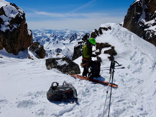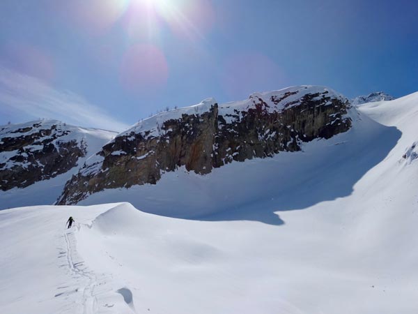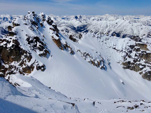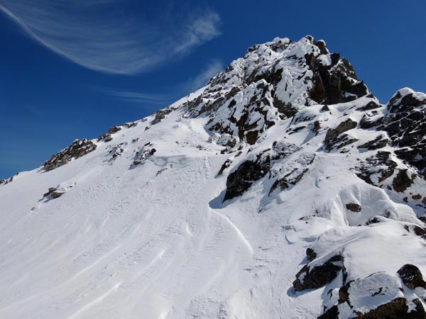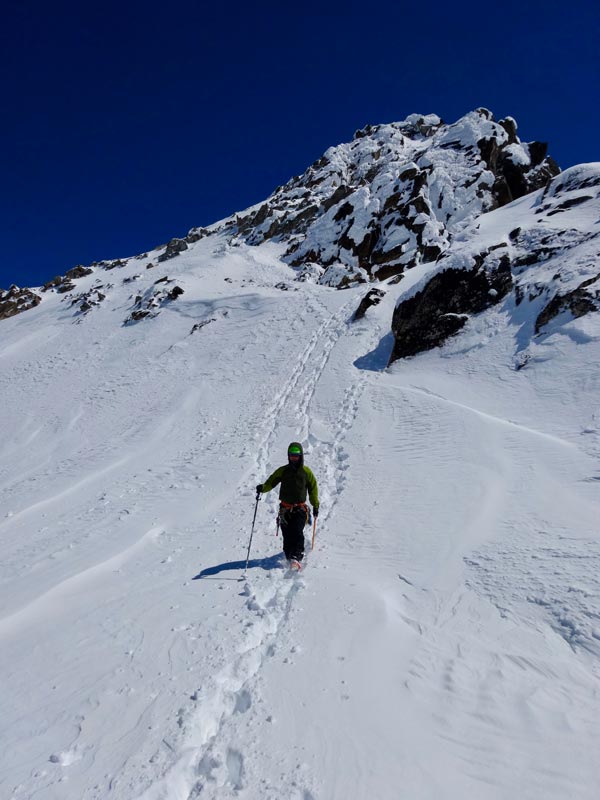 We made a quick attempt to scramble to the top of Silver Star Mountain at 8876′. We made it just shy of the summit and then down climbed to the col to go for a ski.