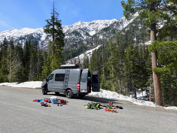 We cruised through Mazama in the late afternoon. Signs along the road indicated that North Cascades Highway 20 was closed. We were crossing our fingers that we could at least get to Silver Star Creek, the start to our adventure. Silver Star Creek lies just east of the winter closure gate and as long as conditions allow, you can access this zone all year. We cruised up the road to check the status and were in luck.
