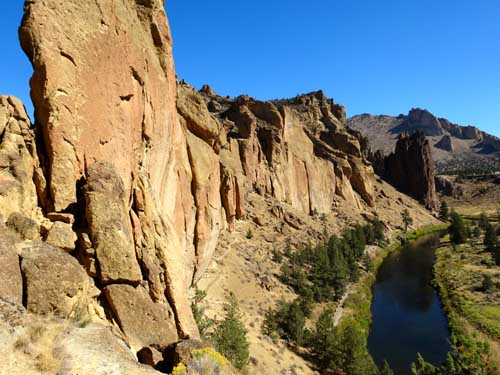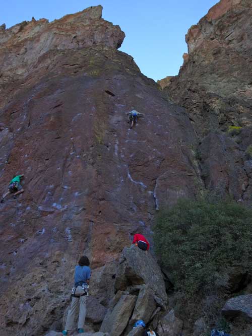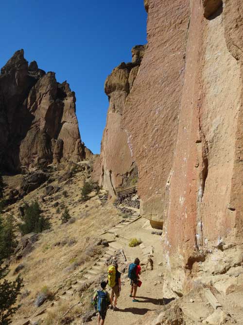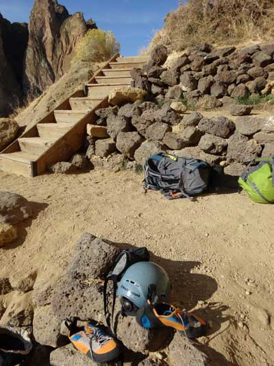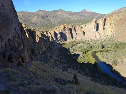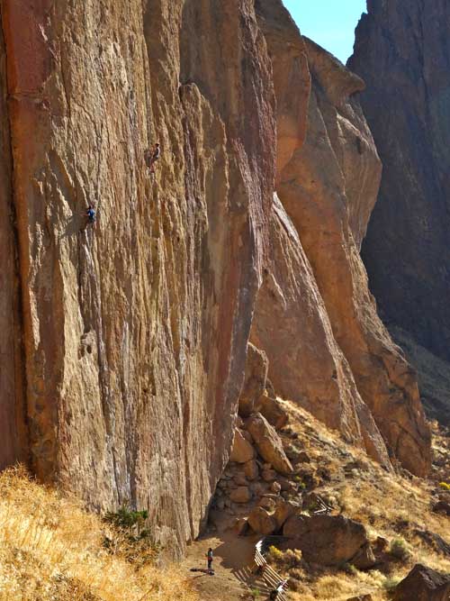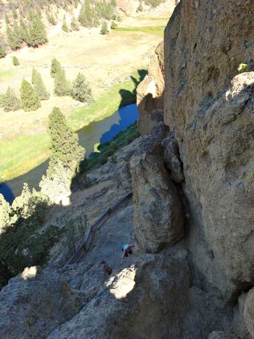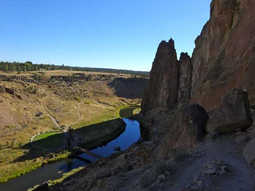 There is a large loop around the entire Smith Rock State Park. Well maintained trails will take you to the base of nearly any climb. A calf-burning jaunt up and over Misery Ridge is a quick way to get back at the end of the day. Be prepared to get puckered downclimbing Asterisk Pass. Stretch the legs going around the southern tip. Leave plenty of time to get places and still have energy to climb.