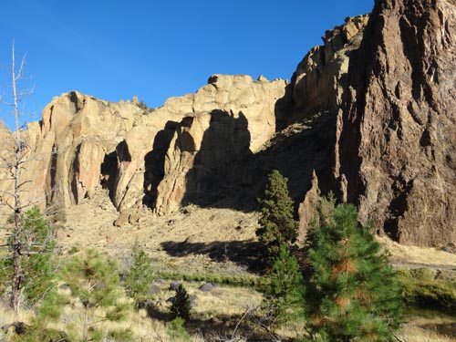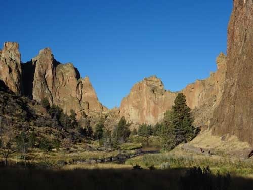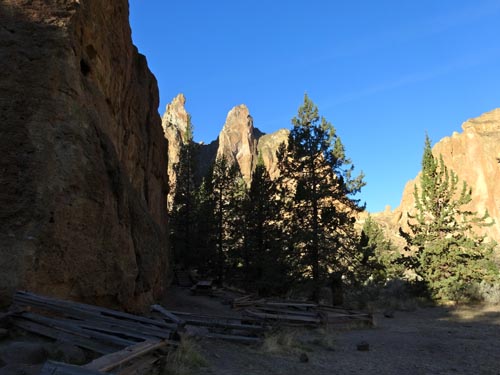 It’s easy to camp at the Bivouac Camp. It costs $5 per person per day and has private showers. Surprisingly, you are not allowed to sleep in your vehicle so bring a tent or a bivy. A short hike (0.76 miles) brings you to the bridge that crosses the Crooked River. Once you cross the bridge it’s climbing time – or hiking time if you aren’t a climber.