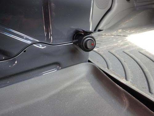 Before we connected the booster, we plugged in the power supply to a 12V outlet at the base of the driver’s seat. This outlet was ideal because it is powered at all times – even when the engine is off. We ran this cord around to the booster, but did not connect it yet.